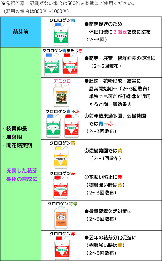 クロロゲンには窒素・リン酸・加里をはじめ各種の微量要素が入っています。