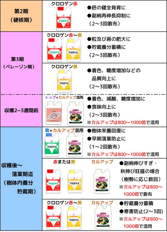 無袋の果実に散布すると玉の白粉がとれてしまうので葉の上から散布