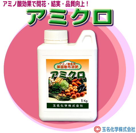 ・農薬混用の場合、まずアミクロの希釈液を作り、よく攪拌し、それに農薬を混用してください。 ・生育状況に応じクロロゲン黄を混用してください。